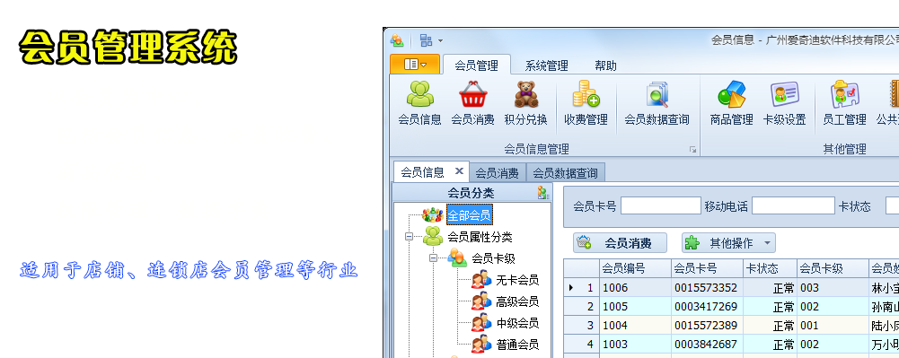 為了迎接移動互聯時代的挑戰,您需要實時連接線上線下的會員管理解決方案;廣州愛奇迪基于云架構的會員管理系統,以及單機版的會員管理系統,能夠根據不同的需求,實時匯集門店采集的數據,實時運算處理,幫助企業建立一致的會員數據管理體驗。